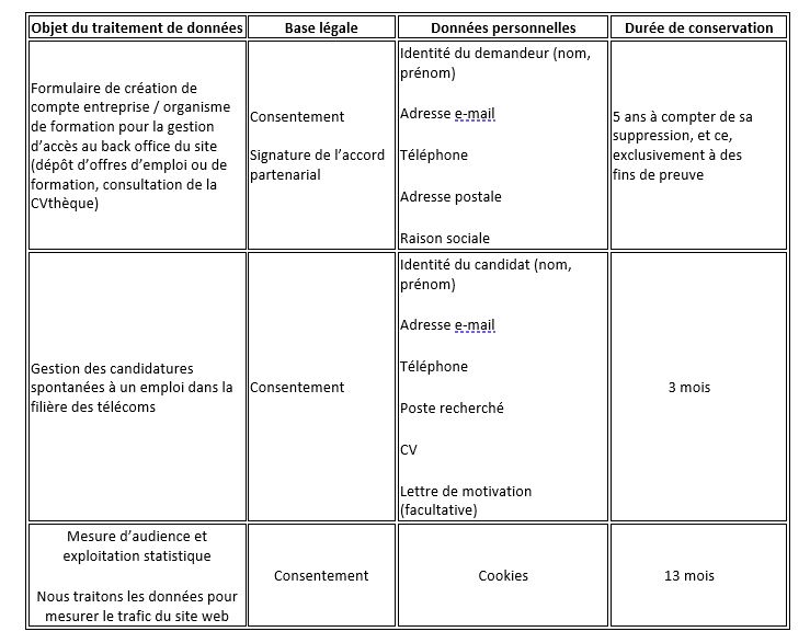Par ailleurs, l’éditeur du site Professions Télécoms s’engage à :